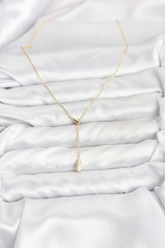 • Pirinç Gold Renk Asansörlü Damla Model Kadın Kolye