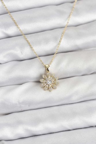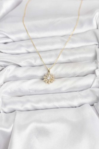 Pirinç Gold Renk Çiçek Model Kadın Kolye