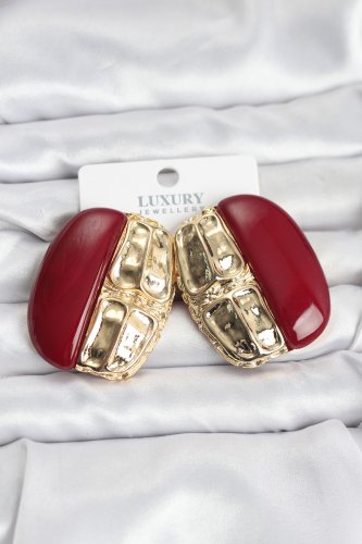• Bordo Renk Pirinç Vintage Kadın Küpe